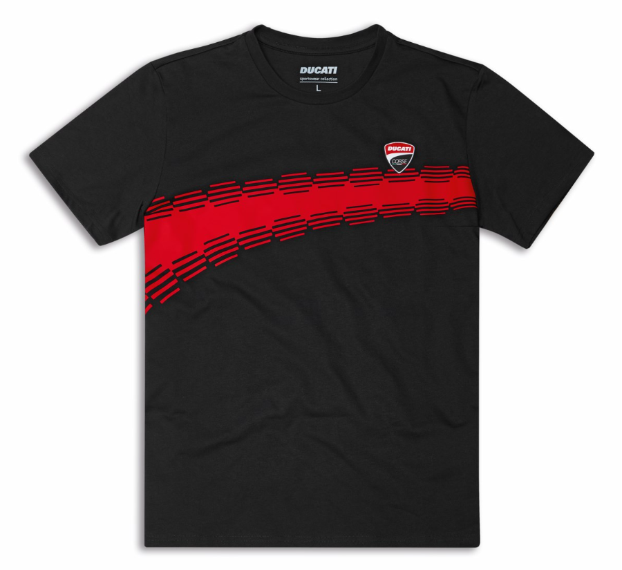 This cotton T-shirt features a front print in Ducati Red, inspired by the curve symbolizing the speed and dynamism of the racing world. The natural fabric of the DC Livery T-shirt guarantees excellent comfort, making it ideal for everyday and leisure use. The regular cut enhances its fit and versatility.